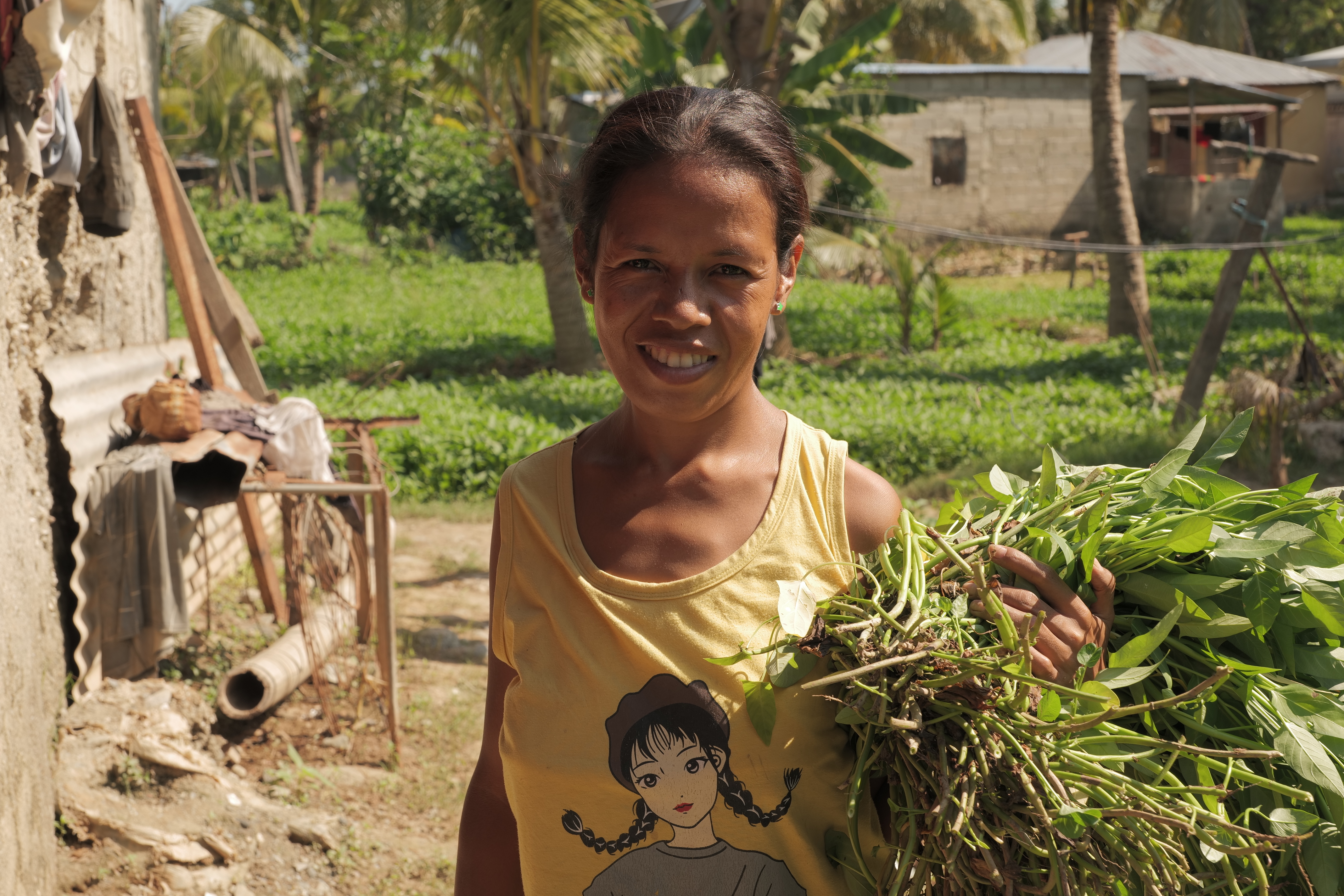 Anatolia’s business is often a full family affair. Sometimes, her children help clean and gather the water spinach. While her husband has his own separate job, he also spends time with Anatolia in the fields and at the market whenever he can. “He always helps me with my business. He always helps me out when he is off duty,” says Anatolia. “My family is good, my parents-in-law are also good. They always help me. I feel their support in my water spinach business.”