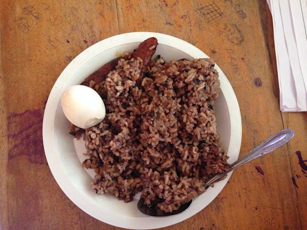 The other 30% of the dish is protein (fish, goat, bushmeat, chicken, crabs and sometimes, beans) and a soup or gravy. This is usually tomato based and pretty spicy. As Accra is on the coast, fish is pretty common. When you order it they ask if you want the head (front half of the fish) or the tail (back half). I mostly stay away from the other animal proteins, they don’t discriminate when giving you pieces and often they are more skin/fat/bone than actual meat. Most Ghanaians mix all the proteins together in the soup (meat and fish together).