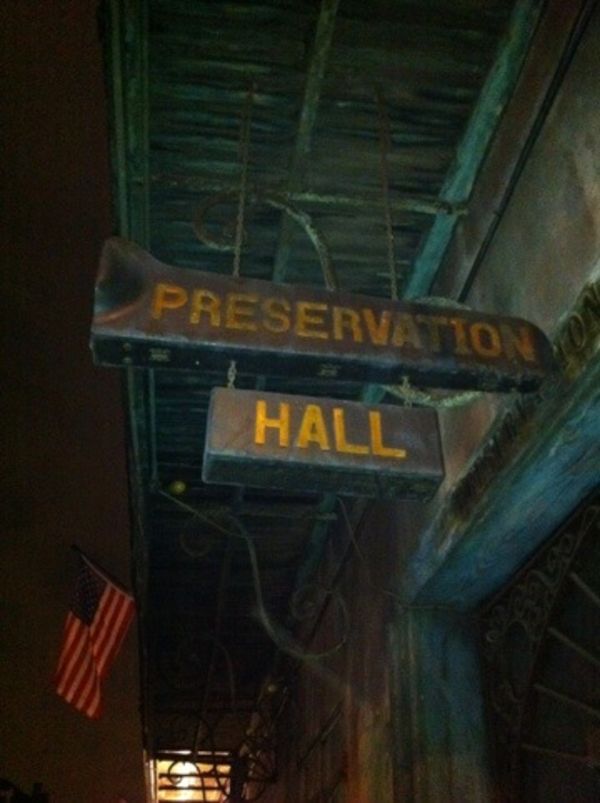 It’s hard to imagine a dingier, more neglected looking space than Preservation Hall in the French Quarter of New Orleans. The tall windows facing the street are shuttered and have not been washed in years, maybe decades. Paint, in the areas that are or were painted, is blistered and peeling, but most of the walls are covered with ancient pegboard stained a myriad of browns and grays by an accumulation of dust and tobacco smoke.
